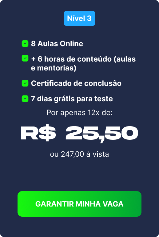 ⚠️ ATENÇÃOPara fazer o Nível 3, é necessário já ter feito os Níveis 1 e 2; caso contrário, a inscrição será cancelada.